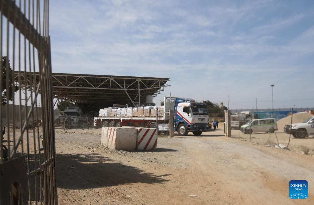 Humanitarian aid medicine entering Gaza strip through Rafah border gate- photo Khaled Omar/Xinhuo