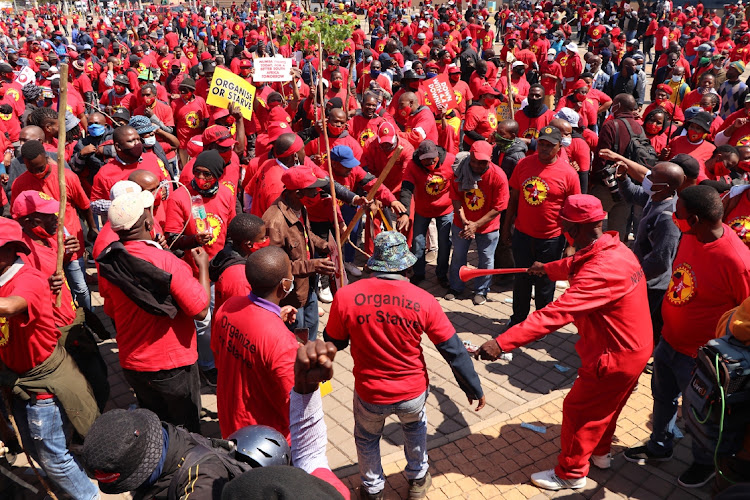 NUMSA members engaging in an industrial action as a demonstration of their demands.