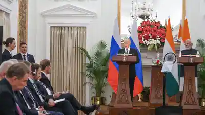 Putin and Modi announce plans to boost bilateral trade to $100 billion by 2030, amidst growing global pressures.
